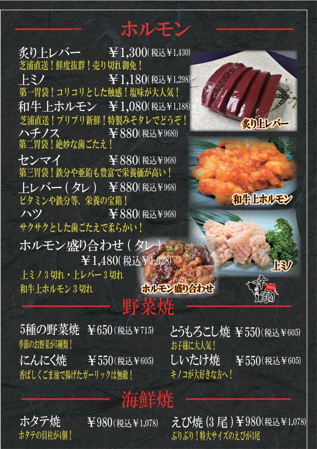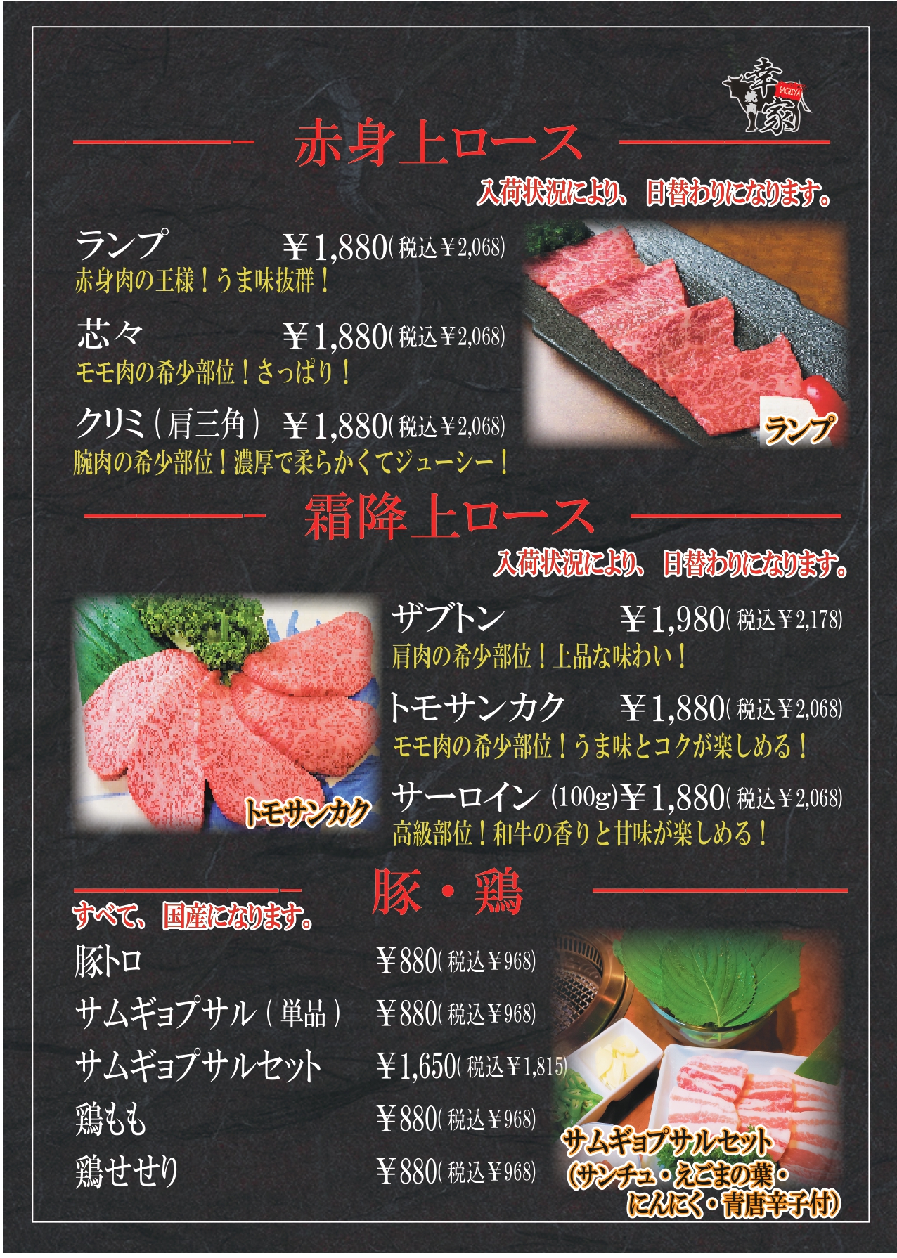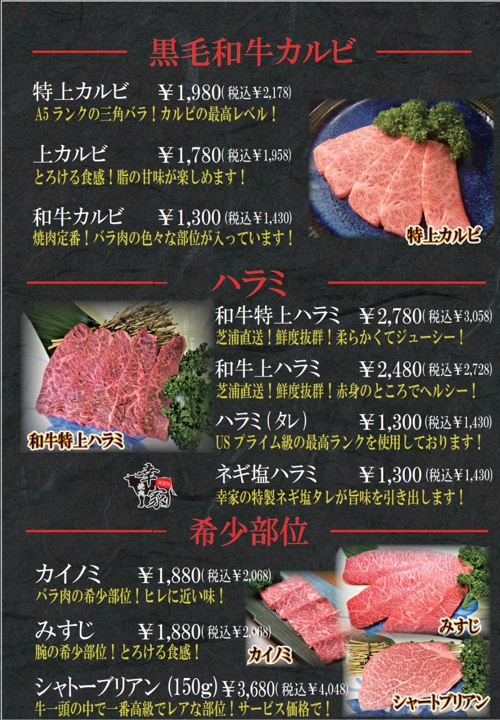 メニュー | 焼肉幸家 | 新宿御苑前駅徒歩3分、黒毛和牛希少部位専門の焼肉店