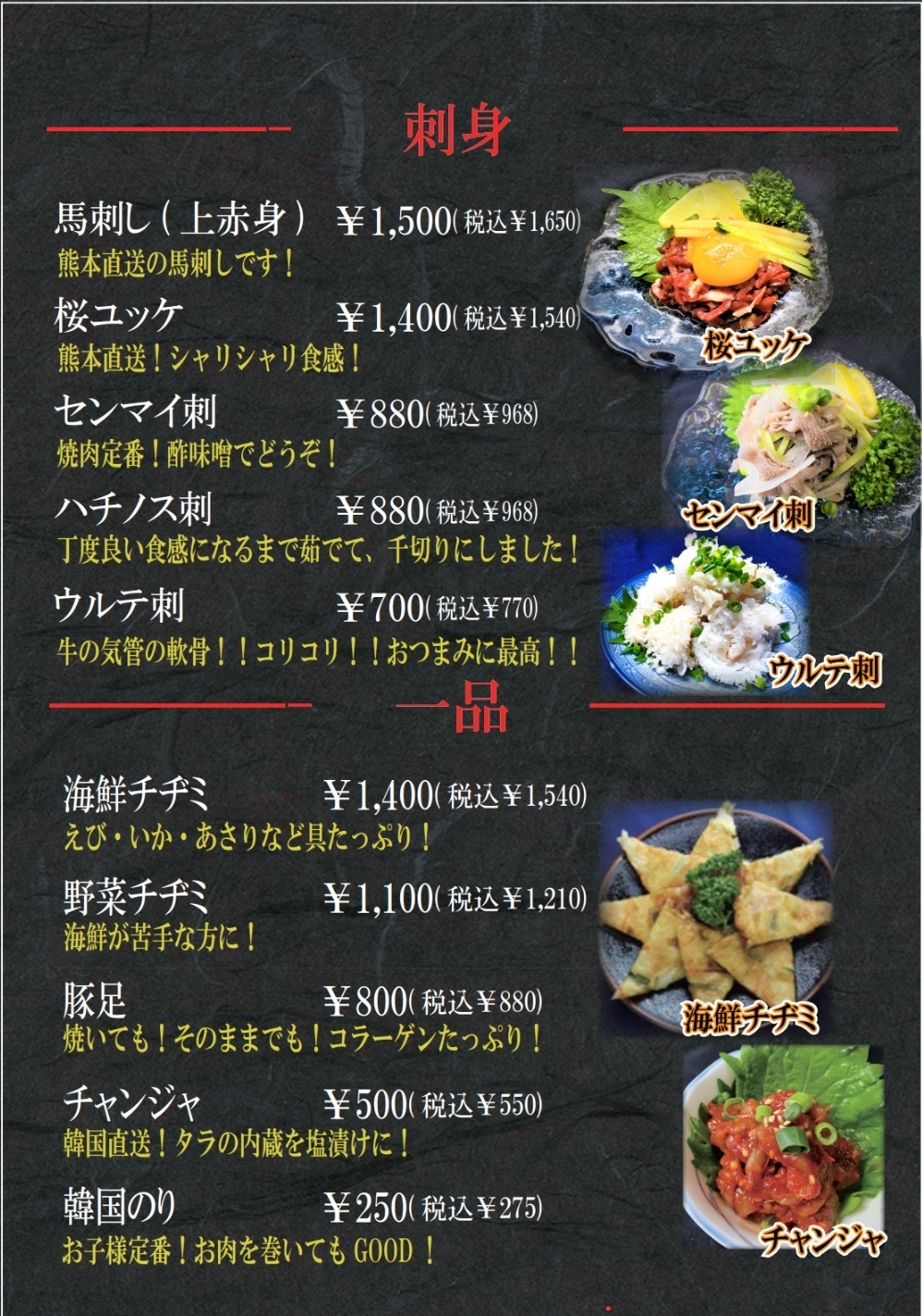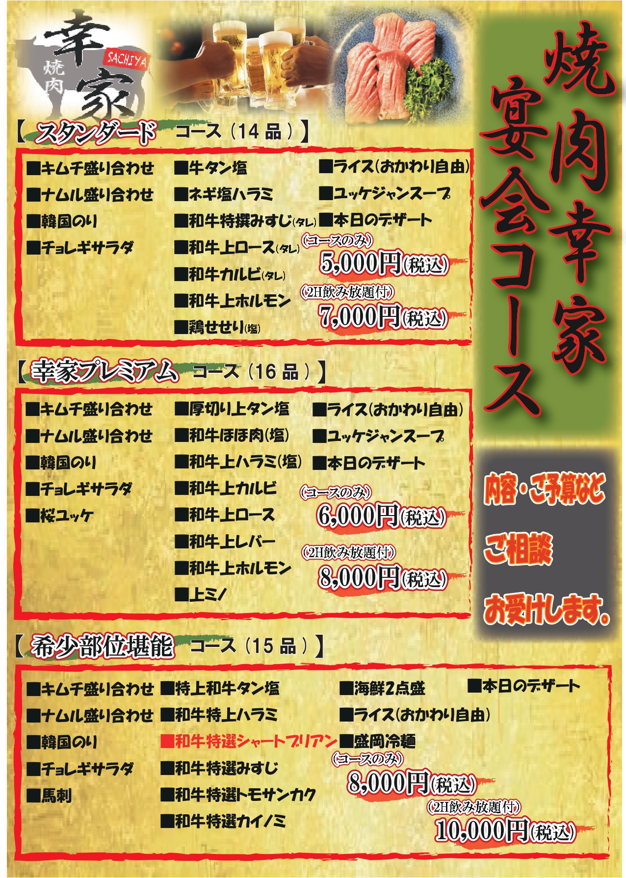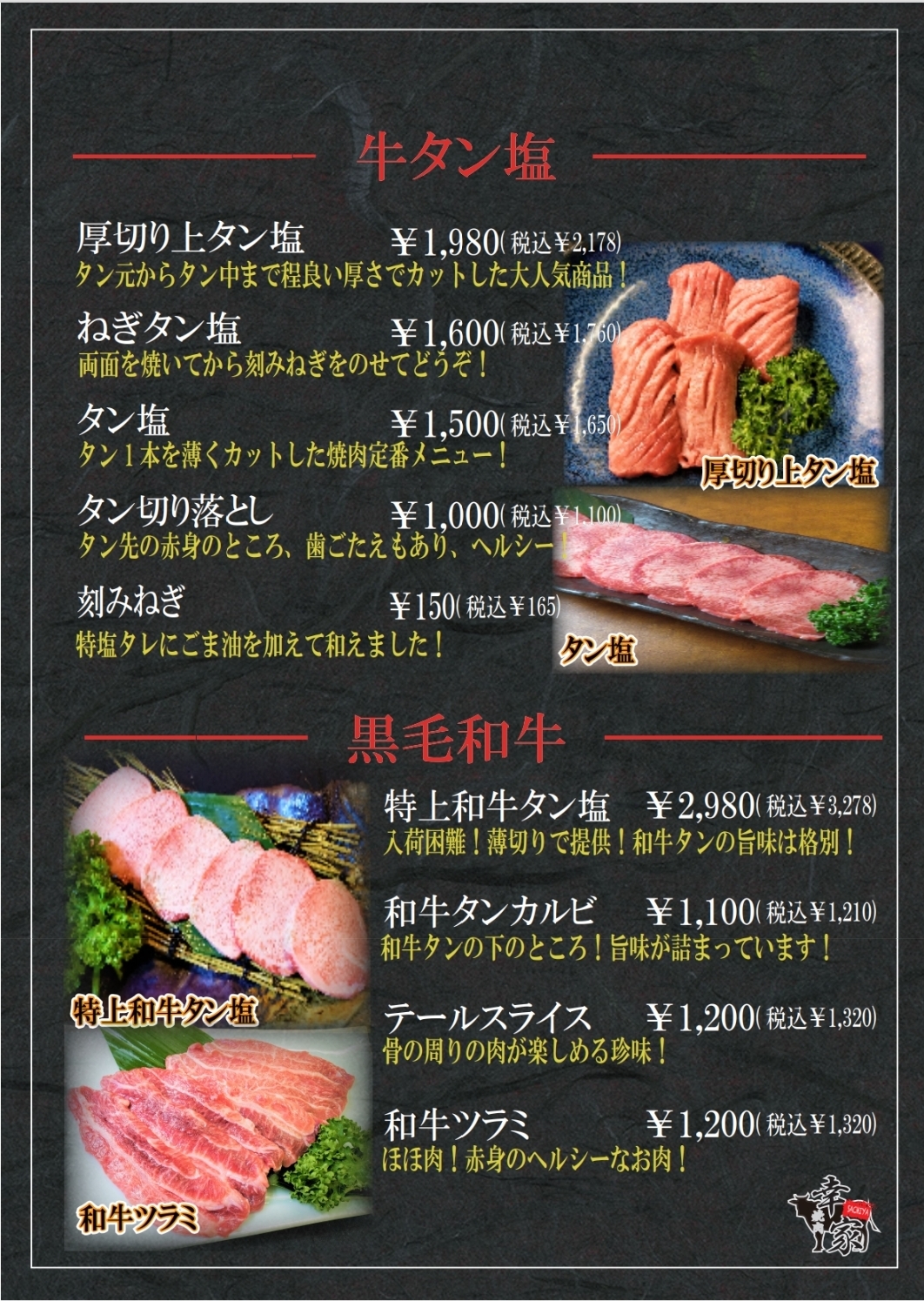 メニュー | 焼肉幸家 | 新宿御苑前駅徒歩3分、黒毛和牛希少部位専門の焼肉店